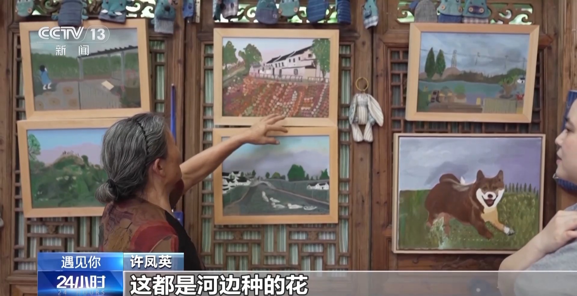 79岁的徐凤英奶奶是上海市青浦区朱家角镇林家村人。徐奶奶患有癌症,但她热爱画画。虽然她不是专业人士,但她用画笔无限放纵、童心未泯、想象力丰富,十年间画了数百幅油画。