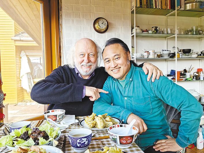 2024年,余泽民到拉斯洛家做中餐,两人愉快地合影。 (照片由受访者提供)