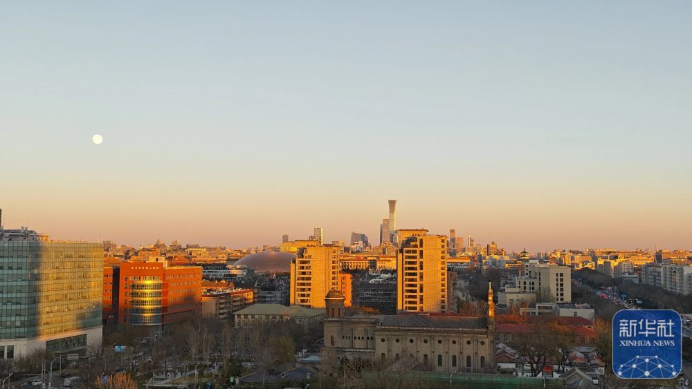 ^ 这是12月4日在北京宣武门附近拍摄的月亮与城市景观(手机拍摄)。图片提供:新华社记者张成。